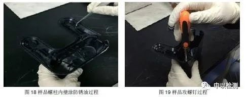 复现性实验:根据客户提供的信息,失效样品在攻入螺钉时,还会对螺钉涂上防锈油进行防锈处理,这些因素是否会对开裂造成印象,故,需要进行复现性试验。