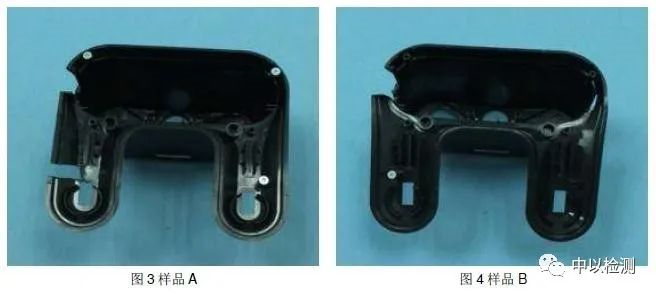 失效样品的材质为 ABS/PC,样品 A 和样品 B 在材质上基本一致,并无显著差异。
