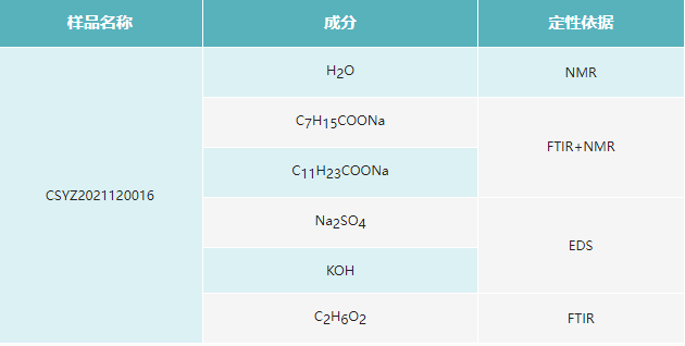 测试需求:某公司处理液,了解其配方,对其质量监控。